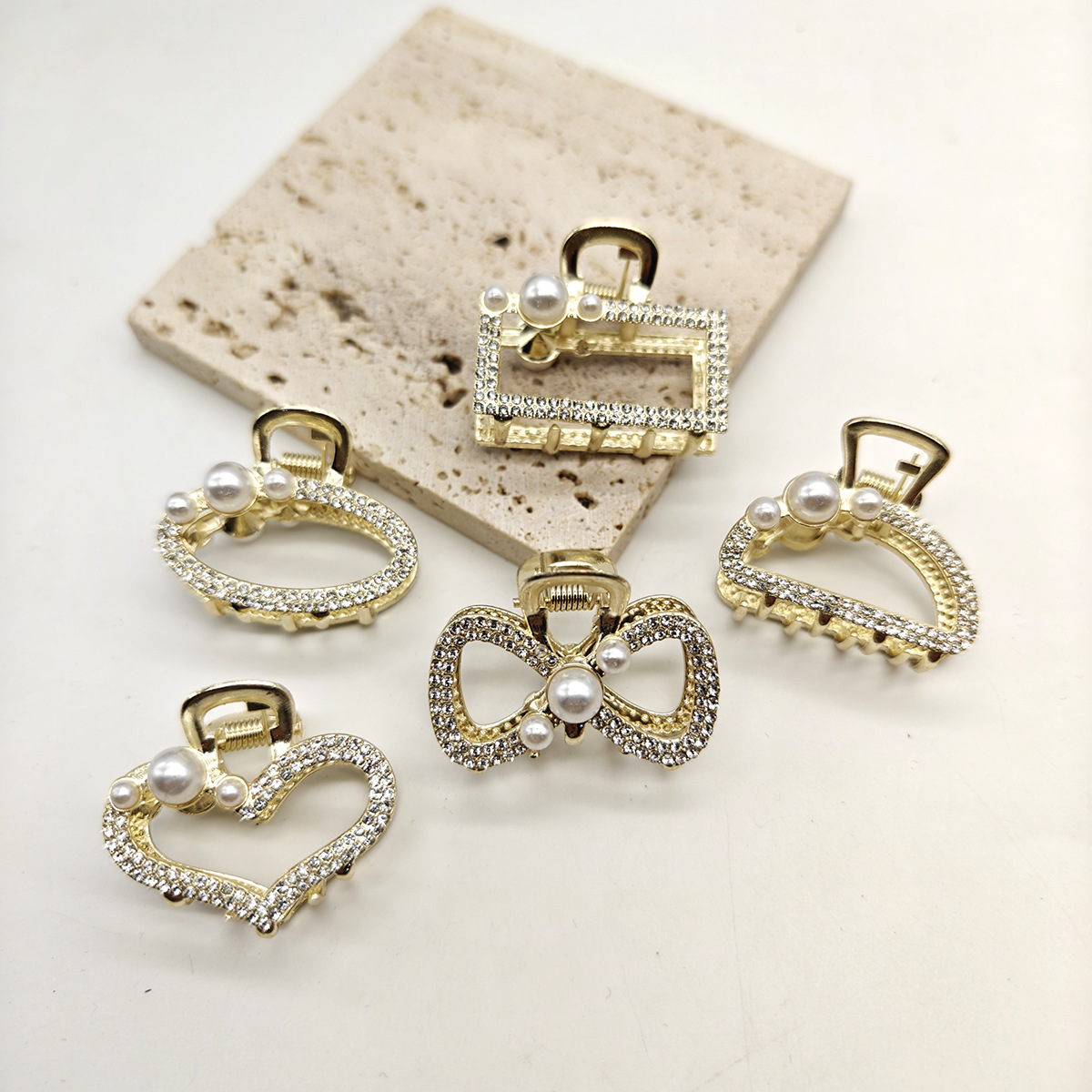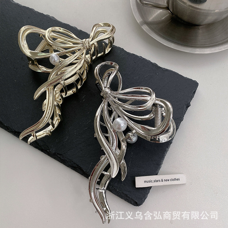 蝶結び2023年新作ビーズ金属クリップ夏後頭部高級感クリップ盤髪サメクリップ飾り
