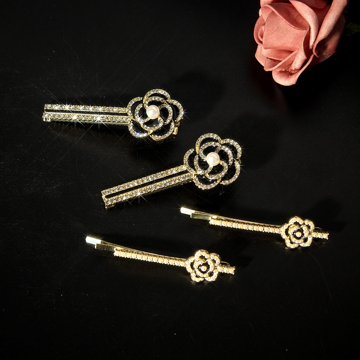 小香風ヘアピン甘い一字クリップカモ口クリップツバキ真珠ヘアピン高級感額砕髪飾り