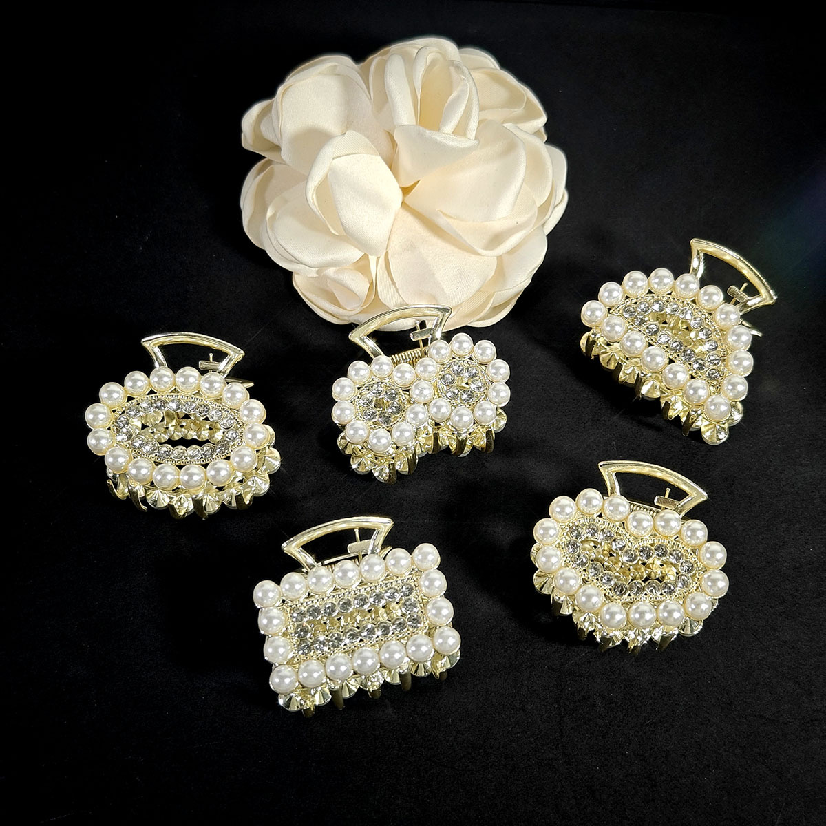 クロスボーダーシャーククリップ、軽くて豪華で多用途なグリップクリップ、パールバックハーフグリップクリップ、ハイエンドのファッショナブルなヘアグリップヘッドウェア