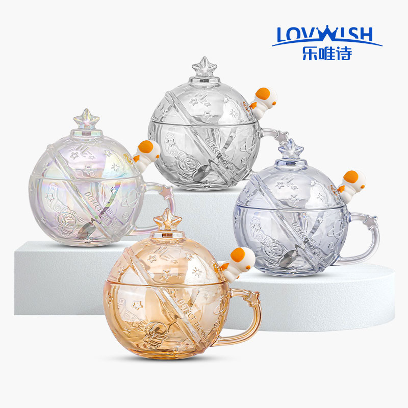 楽唯詩星球杯スプーン付きキッチン家庭用現代飲料カップ創意浮き彫りコッププレゼント卸売り
