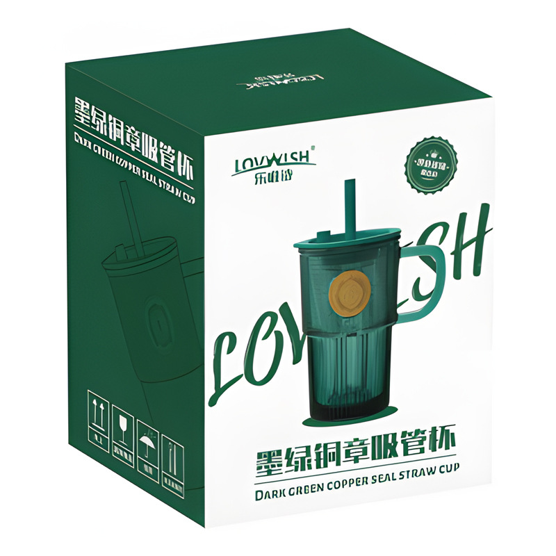ガラスストローカップコップ墨緑原色鉛フリー厚さ幾何学筋理ネット赤高颜値飲料ジュースカップ