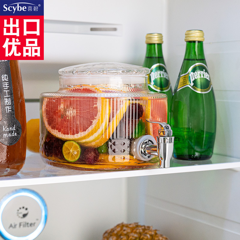 喜碧韋拉泡飲桶ガラス容器蛇口付きコーラジュースネットレッド飲料ビール牛碧酒桶卸売り