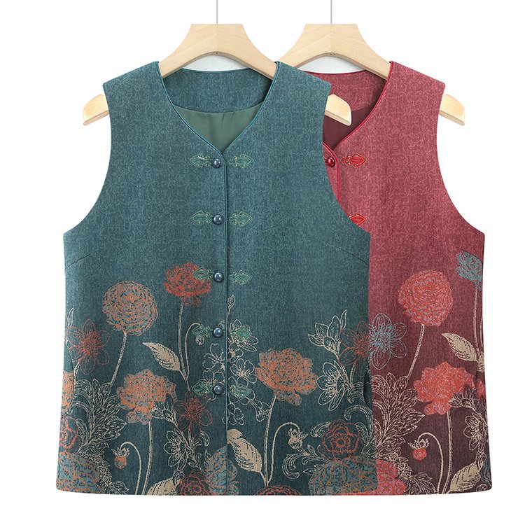 お年寄りの馬甲の女性のおばあさんの秋の服装のベストのコートの大きいサイズのお母さんの肩の老人の服の春秋の奥さんは外で着ます。