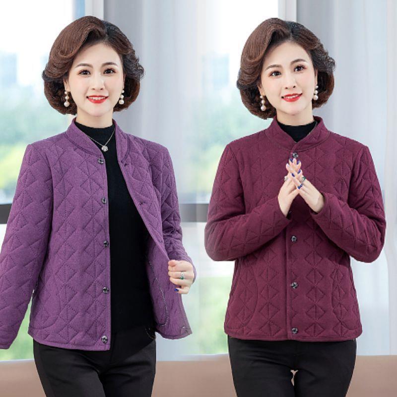 中年の大きいサイズの婦人服の上着の中で高齢者の短いコートの秋冬のお母さんはベルベットを詰めて厚いカシミヤのジャケットをつかみます。