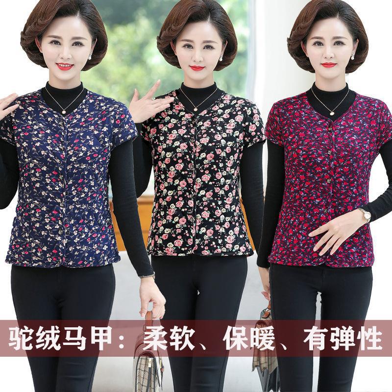 中高年秋冬保温徳絨毛馬甲の女性肩保護のお母さんは半袖の外にベストを着て肩保護をします。