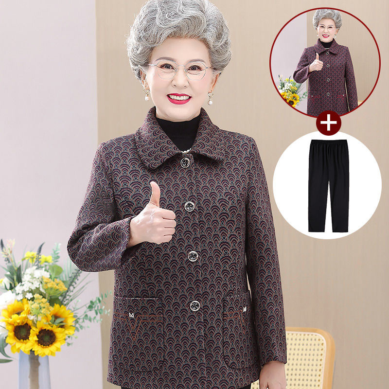 おばあさんの長袖のお母さんの春秋の老人のおばあさんの服の2セットの中高年の春秋の服の刺繍のスーツの女性