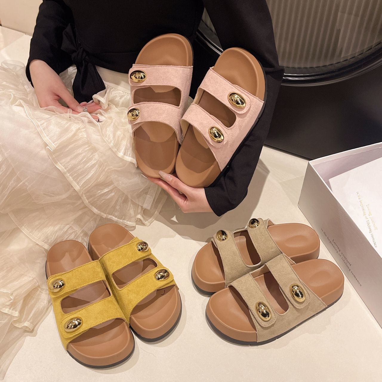 厚底ビルケンシュトックつま先スリッパ 2025 新しいレトロ春醜いかわいい怠惰な片足スリッパアウターウェアインターネットセレブハーフスリッパトレンディ