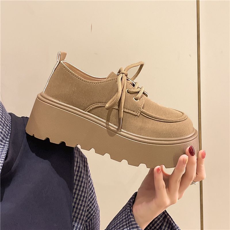松餅の厚い底の楽福の靴の女性の2025年の春の新型のフラットシューズの小さい背は高くなります。