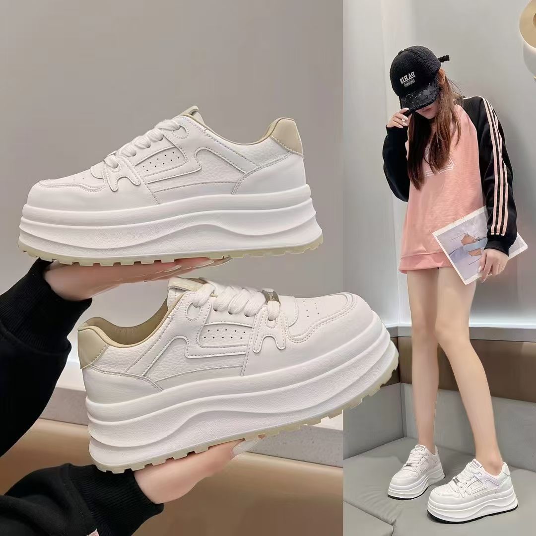 白い靴の女性2025の新型の春と秋の爆発的なビスケットの靴の子供の厚い底は高くなって、カジュアルなスポーツの板の靴を合わせます。