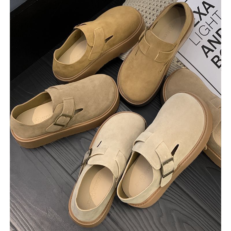 超人気の厚底高さアップビルケンシュトックシューズ女性用オールインクルーシブ2025秋新作ラウンドトゥ多用途ベルトバックルレトロビルケンシュトックシューズ