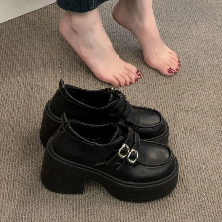 厚い底の爆発の音楽の福の靴の女性の2025年の春秋の新型の超ハイヒールのベルトのボタンの英倫風insの小さい靴