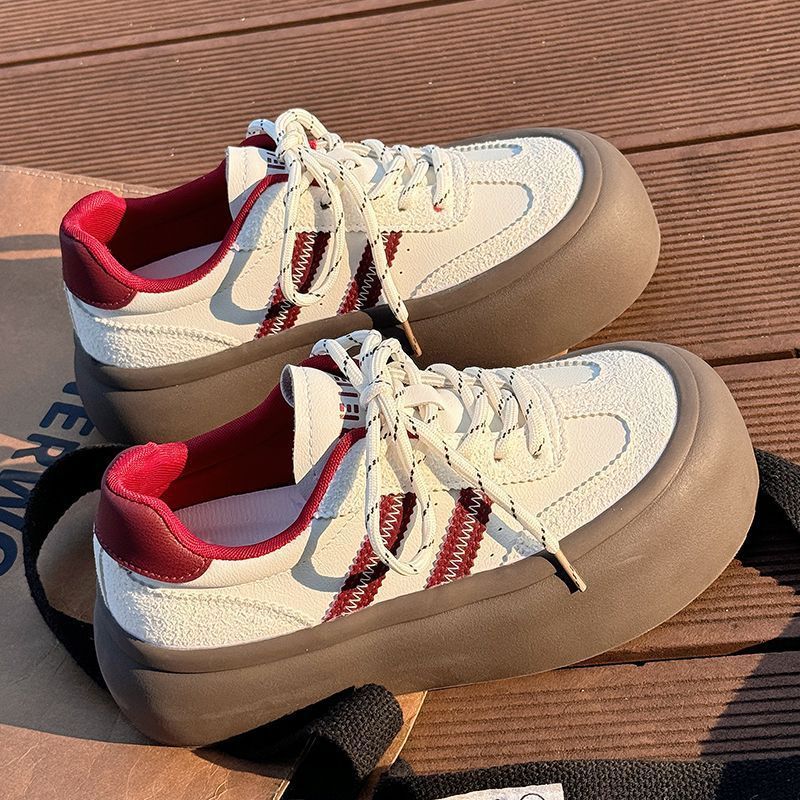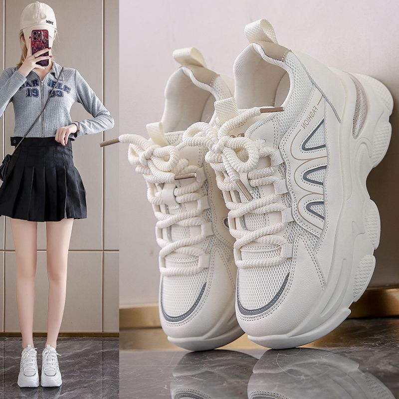 起爆金の厚い底が高くなった安可拉紅父靴女小衆運動靴2025新型白靴カジュアルシューズ