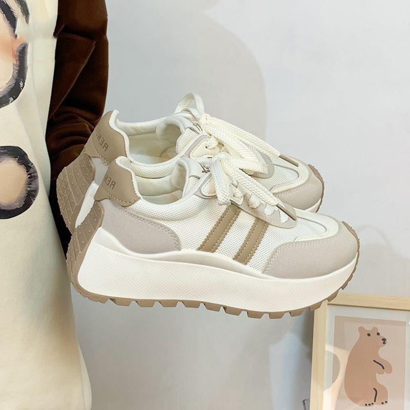 四季型の高組のお父さんの靴の女性の韓国版の新型の2024秋の学生のランニング運動の厚い底はレジャー靴を高くします。