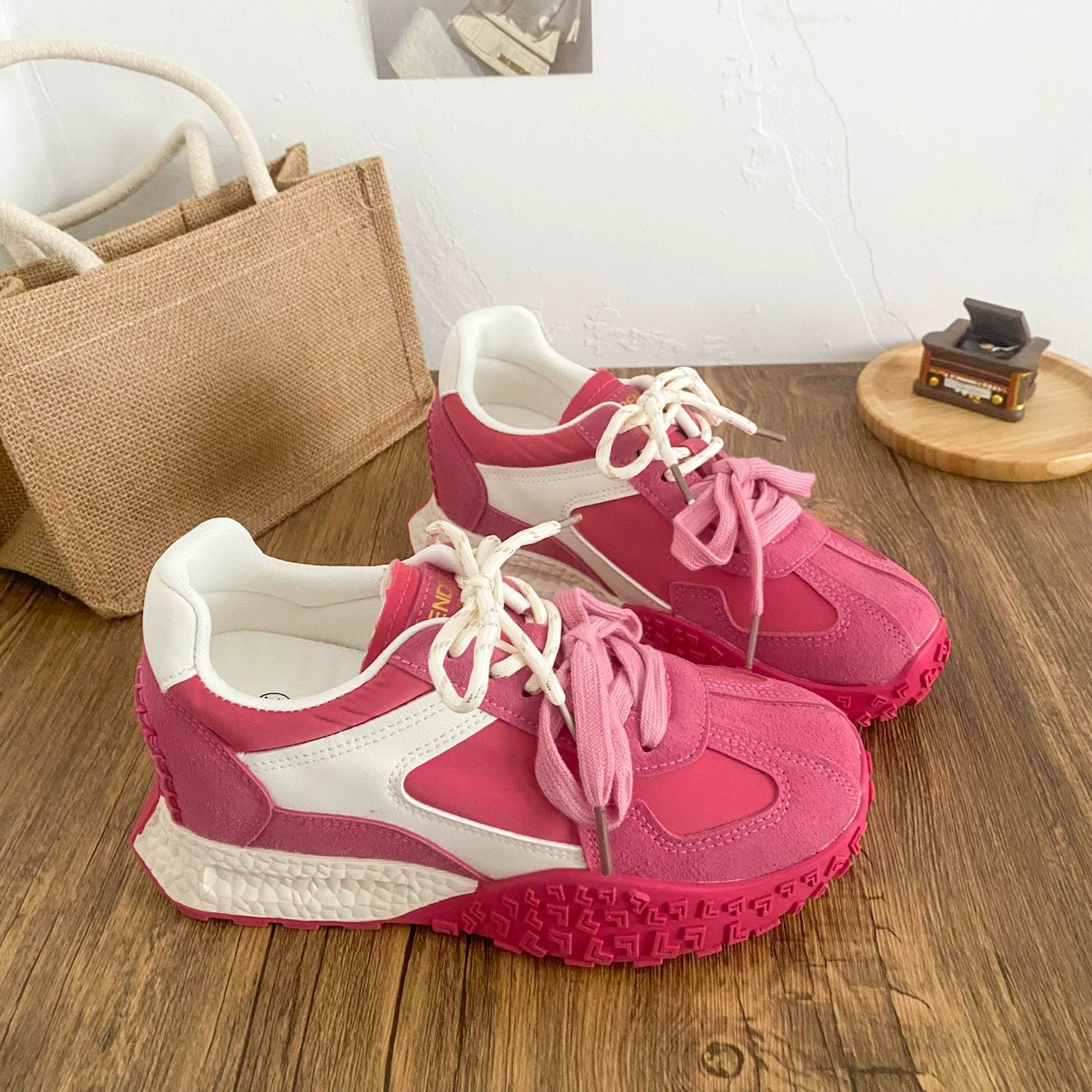 人気のプラットフォームソールバッグとダッドシューズ女性用2025人気のメッシュスタイルフォレストシューズ超ハイストライプスポーツシューズトレンド