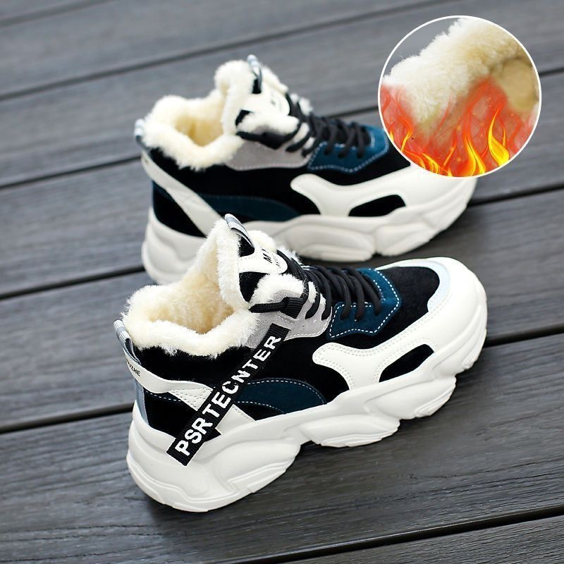 綿の靴の女性のベルベットの厚い運動のカジュアルな靴2023冬の新型の起爆のお父さんの靴の百合の保温の女性の靴