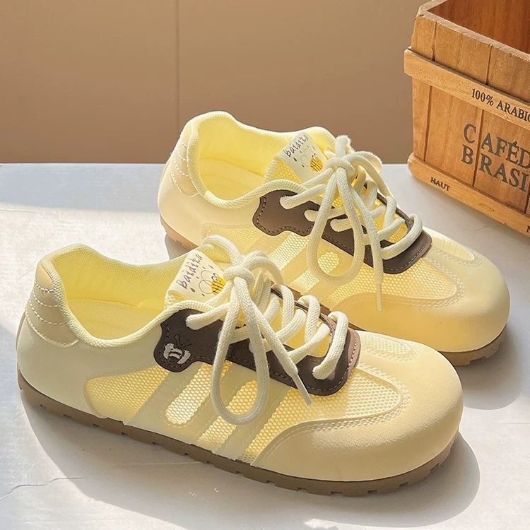 女性用メッシュ道徳トレーニングシューズ 25 夏の新しい平底、疲れにくい、カスタード通気性スニーカー、女性用多用途カジュアルシューズ