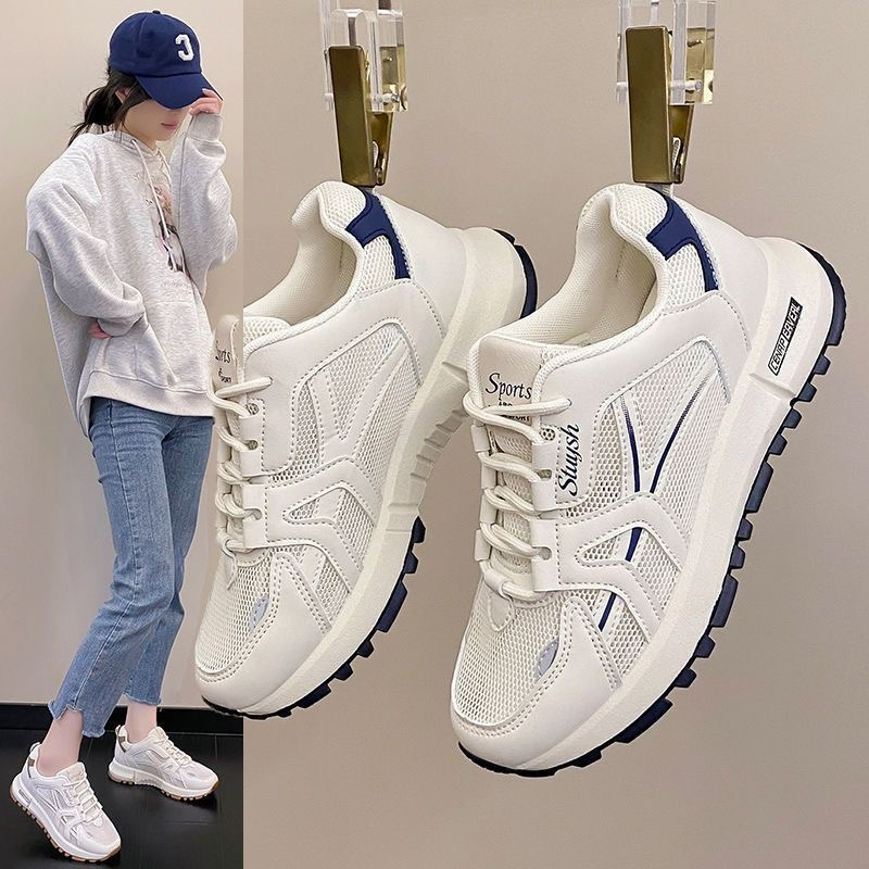 メッシュパフホワイトシューズ女性のための 2025 新しい夏通気性軽量ソフトソールニッチ道徳トレーニングスポーツレーシングシューズ