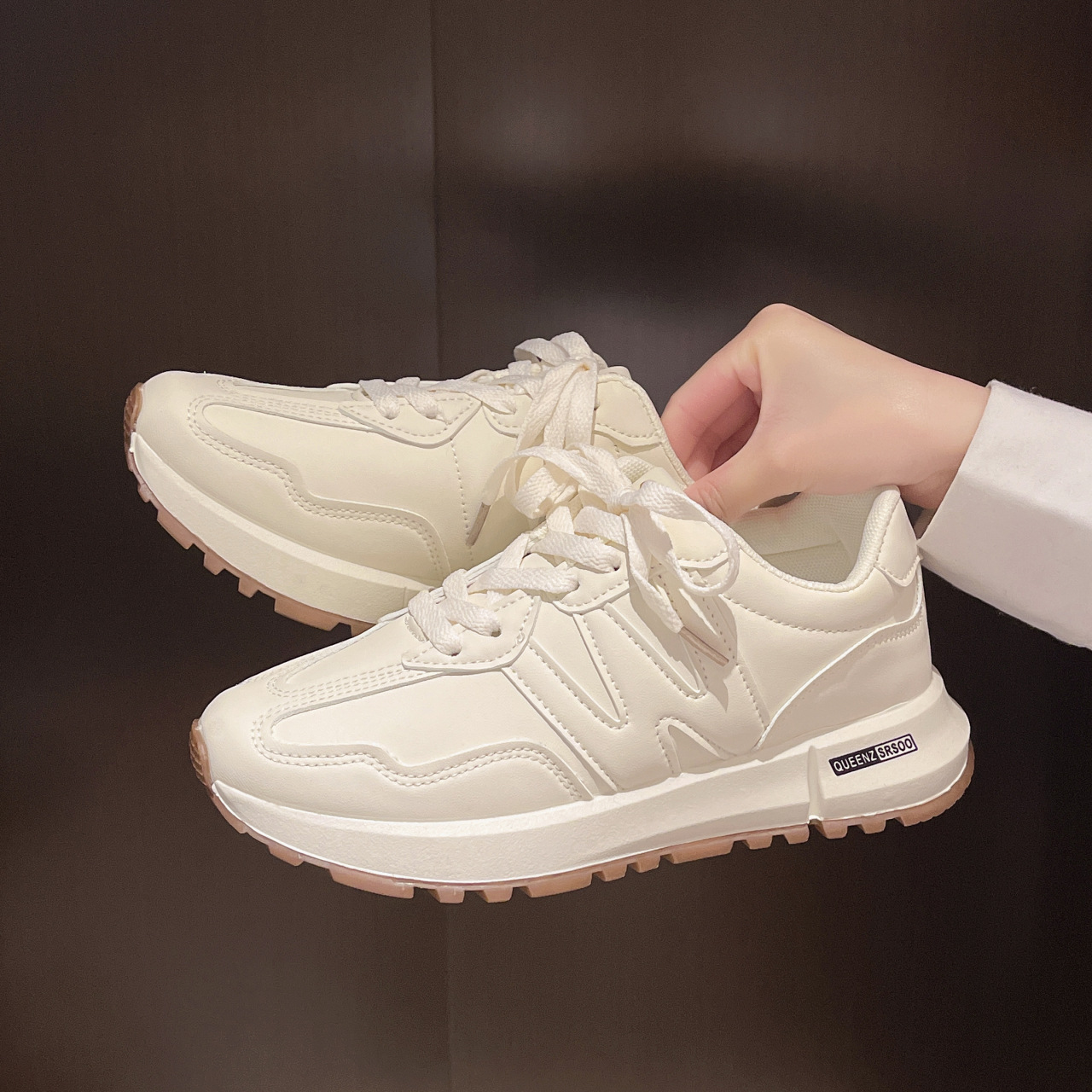 軽やかでファッション的な通勤は厚い底の白い靴の女性のタイプの2025新型の春秋はレジャーの皮の運動靴を高めます。