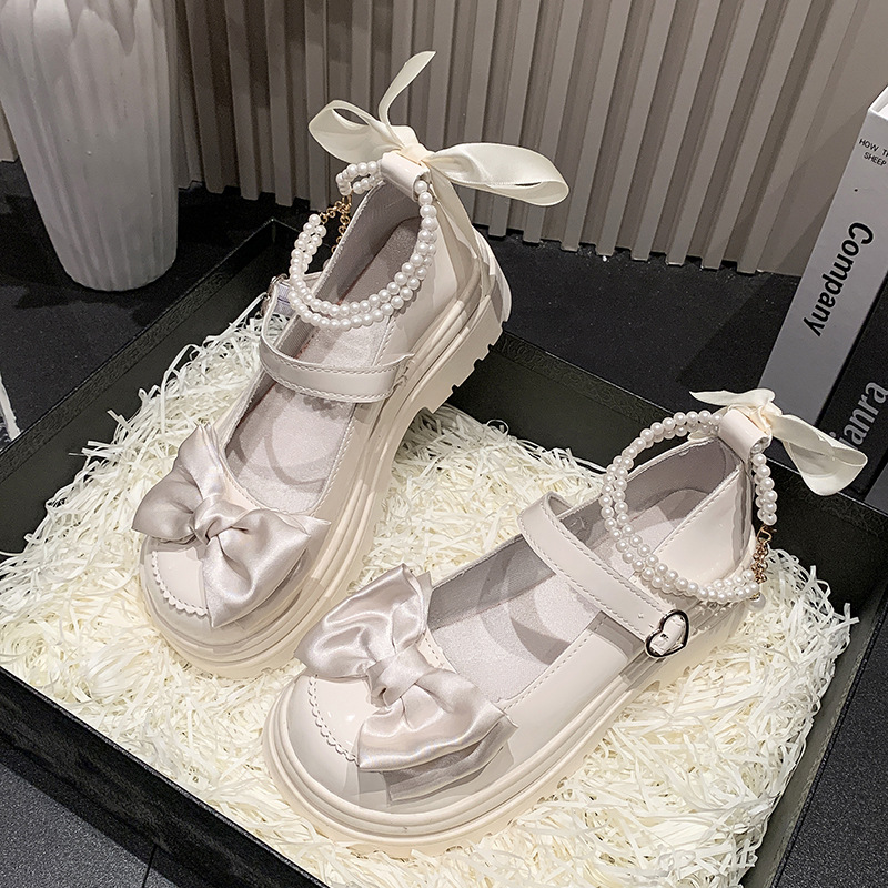 甘くてクールなメリージェーンの女性用小さな革靴、レトロな春夏の新しいスタイルのリボンとスカート付き日本のJKカレッジスタイルの靴