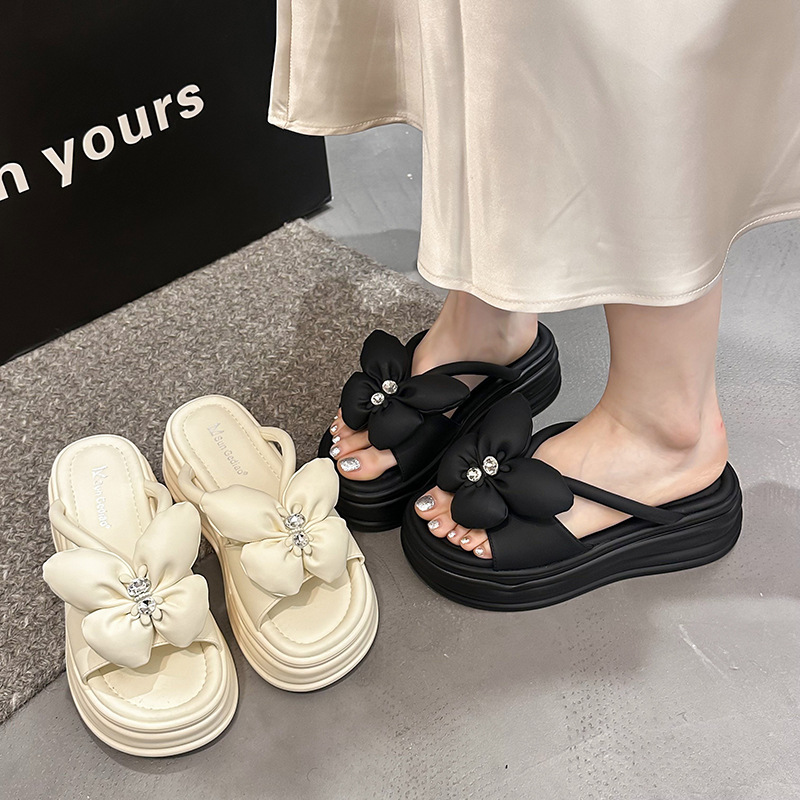 松餅の厚い底の美しい露指のサンダルの女性の夏の外は2025新型の夏の優しいアンドロメダの風の1字のサンダルを着ます。