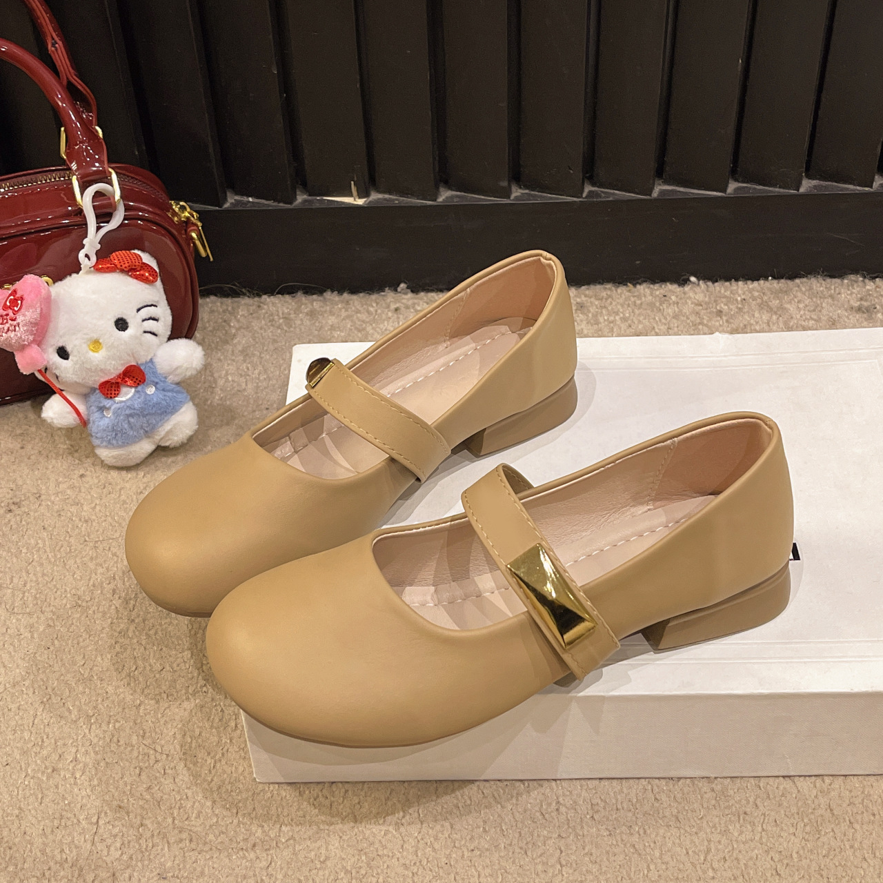 ビスケットの底の大きいサイズの小さい靴2025春の新型の英倫風の音楽の福の靴の1足は浅い口の丸い靴の女性を漕ぎます。