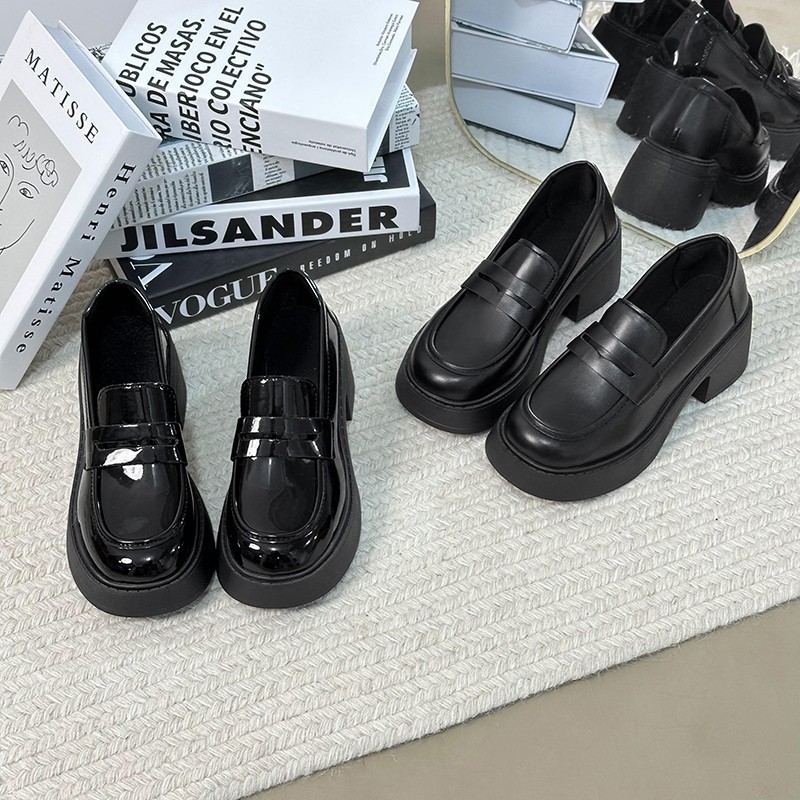レトロな厚底レザーシューズ、レディース、英国風、シングルシューズ、外履き、2025年新作、秋、万能、チャンキーヒール、ローファー