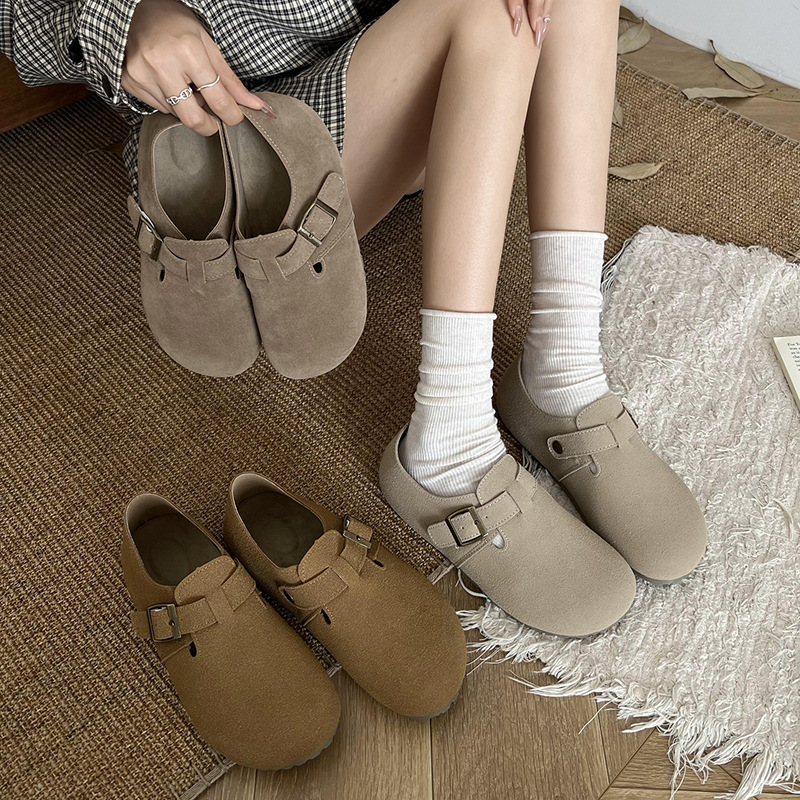 レトロビルケンシュトックシューズ女性の春と秋の新超人気イン婦人靴片足ビーニーシューズ日本のパン醜いシングルシューズ