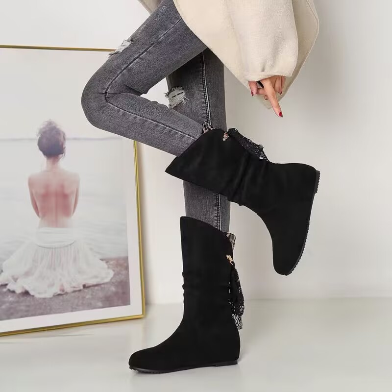 小柄な人向けの身長を伸ばすブーツ 2025秋冬新作 バックジッパー カジュアル ラウンドトゥ 厚底 ナイトブーツ レディースブーツ