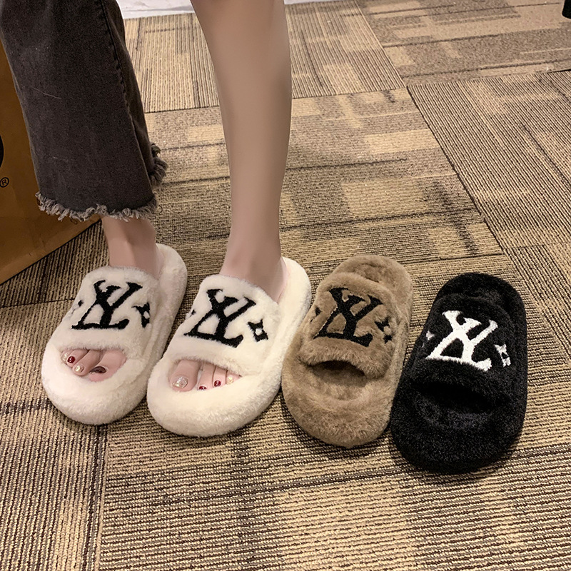 毛皮のようなスリッパ女性のアウターウェア 2025 新しい文字刺繍厚底ラムウール秋と冬の平底スリッパ卸売