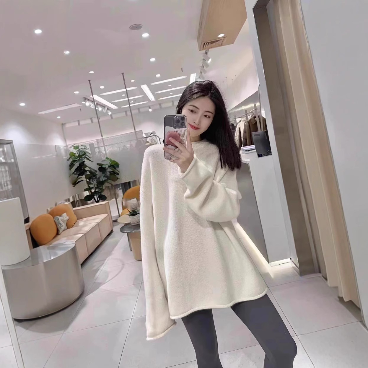 新商品の怠惰な風の柔らかいモチモチの丸首のセーターの中で長いタイプの純ウールの女性の保温の長袖のカジュアルな簡単な底の上着