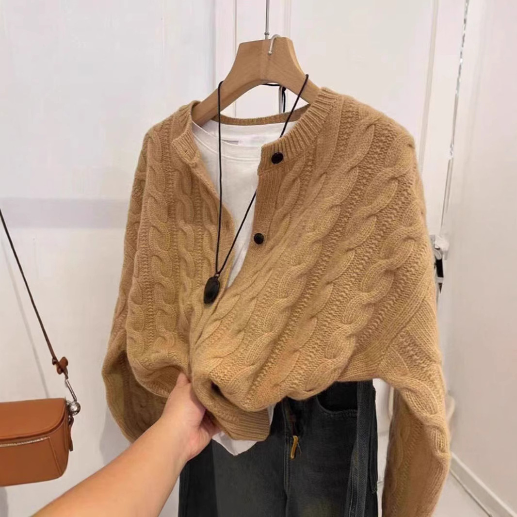 古典的なレトロな麻の花の短いカシミヤのニットのカーディガンの女性の秋冬のゆったりとした厚いセーターのコートの丸首のセーター