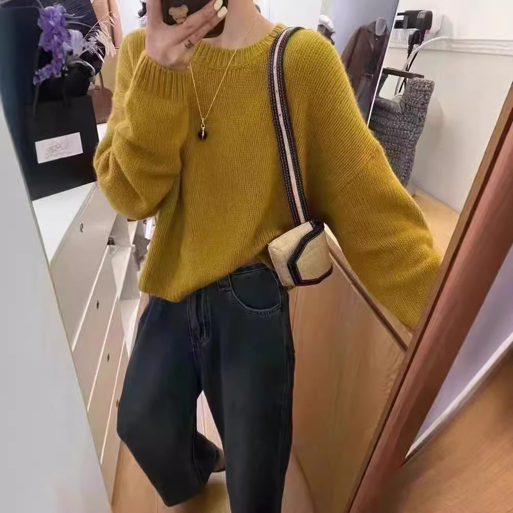2025秋冬ハイウエストショート丈ソフトウールセーター、スクエアネック、無地、インナーウェア、おしゃれなカシミヤニット