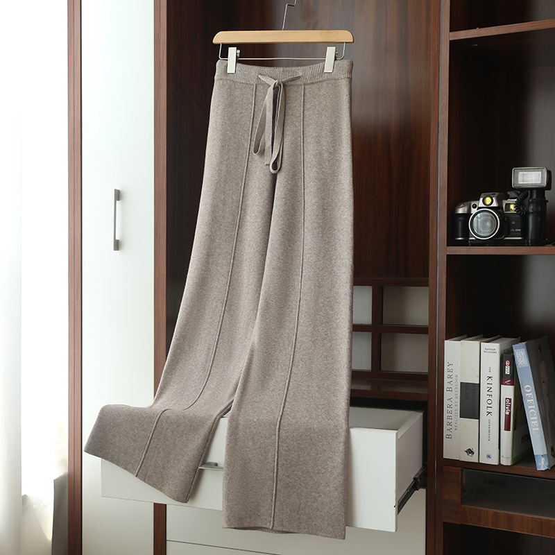 2025 秋冬新作ハイウエストウールワイドレッグパンツレディースカジュアルドレープルーズフロアレングスパンツアウターニットパンツ