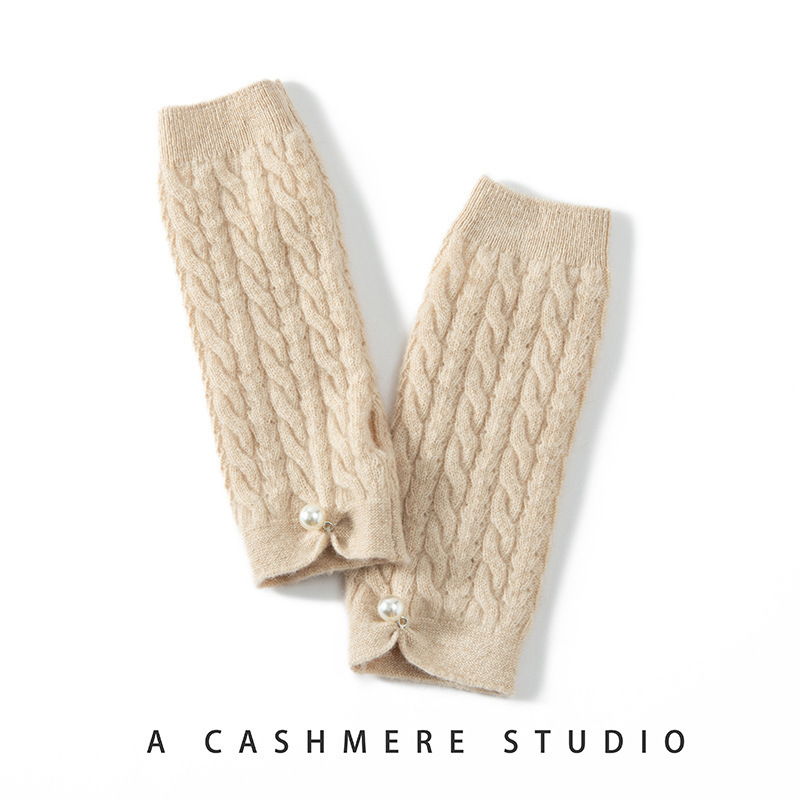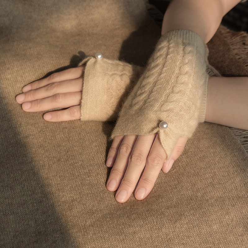 2023秋冬の新型のカシミヤの女性の保温のファッションの百合の指の手袋の麻の花の針は手袋を編みます