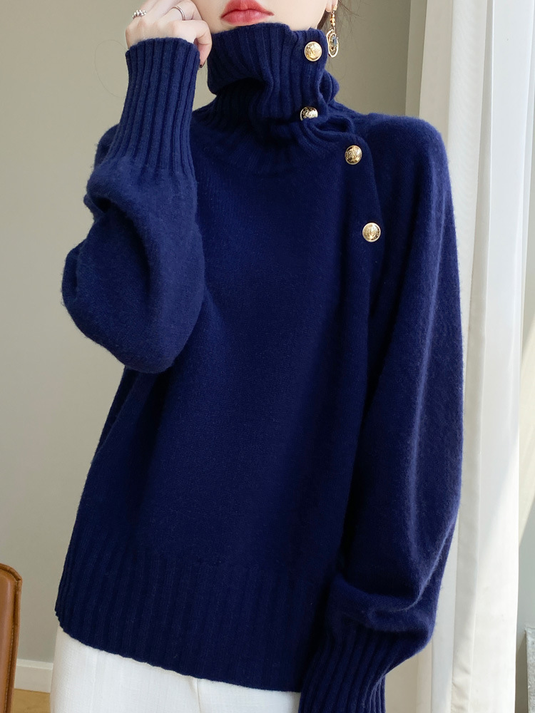 厚いデザイン感の小さなボタン2023秋冬の新しいウールの女性の高襟の麻の花のセーターのカシミヤのニット