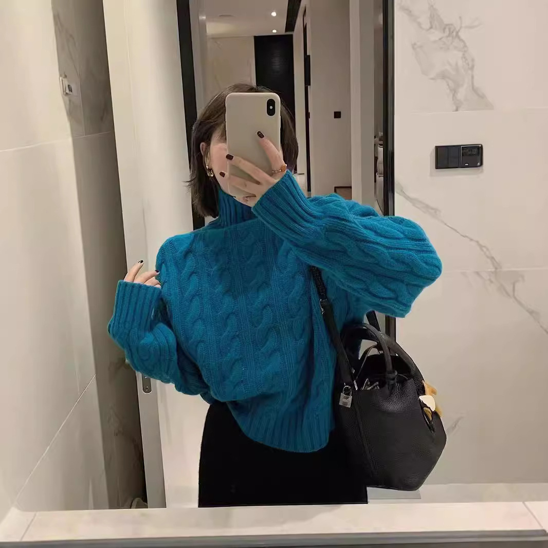 重いポンドの厚い韓国のカシミヤの百合は底の女性の高襟の郭の形の麻の花のカジュアルなゆったりしている秋冬のウールのセーターを打ちます。