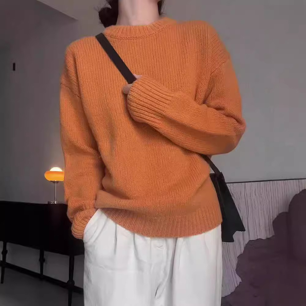 ヨーロッパの丸首の柔らかいモチモチ100ウールのニットの女性の秋冬のゆったりしたプルオーバー