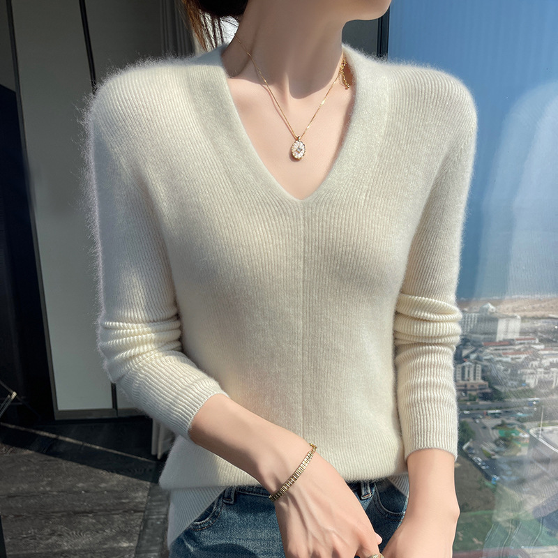 Baby柔らかいモチモチのカシミヤの女性vネック2024秋冬の新しい修身上着ウールのニットセーター
