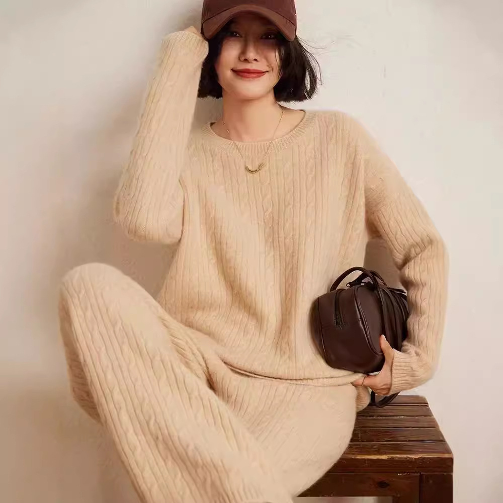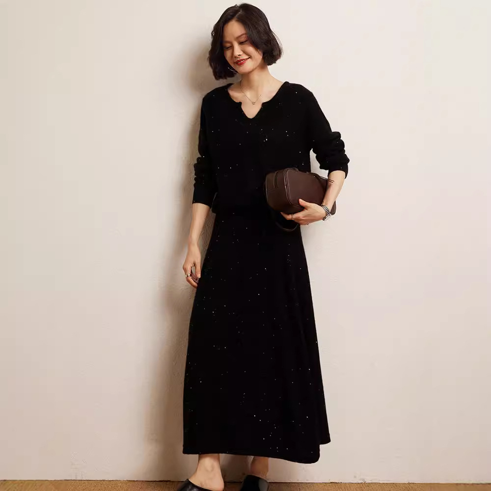 スパンコールカシミヤセット女性の質感ファッションセーター半身スカート秋冬2点セットカジュアルウール洋気モデル