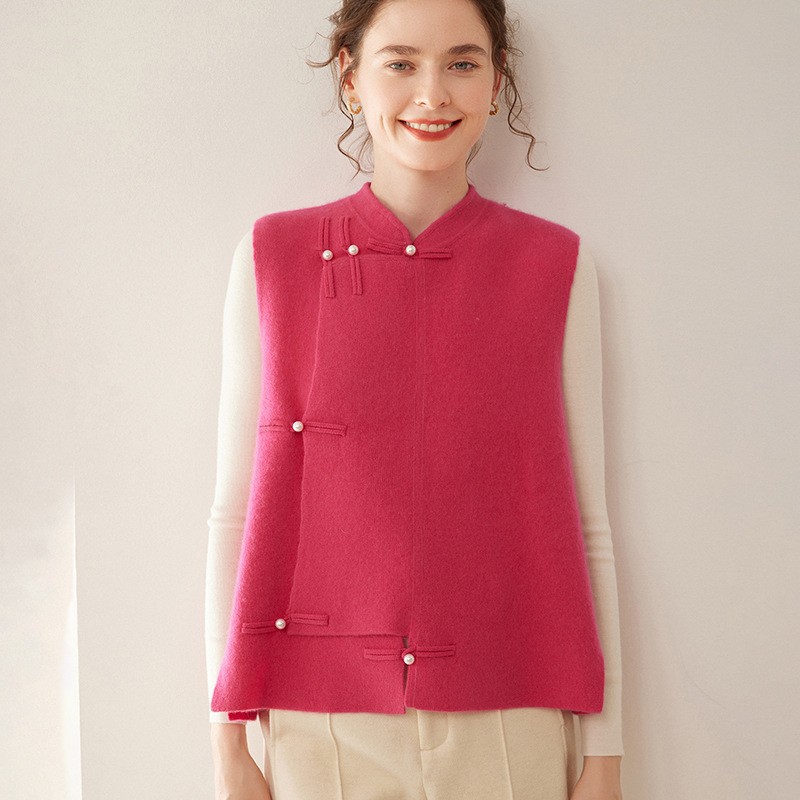 カシミヤベスト 秋冬新作 レディース スタンドカラー ボタン留め ノースリーブトップス キャンチョン 中国風 ゆったり型ベスト