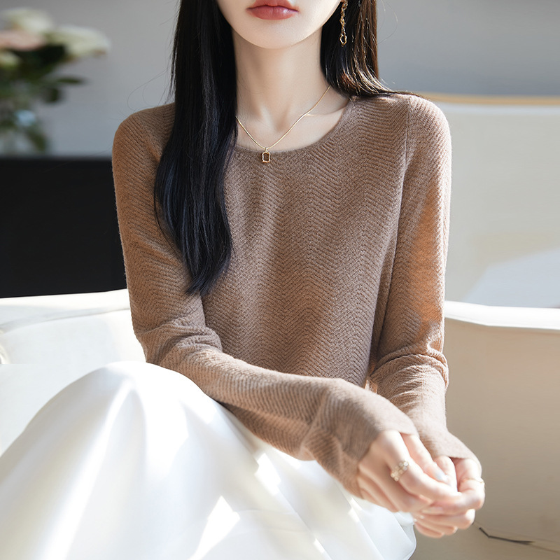 2025年と秋の新型丸襟精紡ウールニット女性のゆるいセーターには、シャツの気質の上着が似合います。