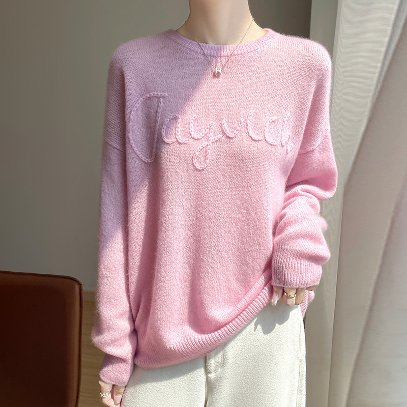 カシミヤマルベリーシルク年齢軽減甘い女性 2025 秋と冬の新しいレターラウンドネックセーター無地厚みのあるセーター