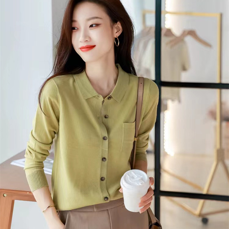 ファッション百合POLO襟カシミヤニットカーディガン
