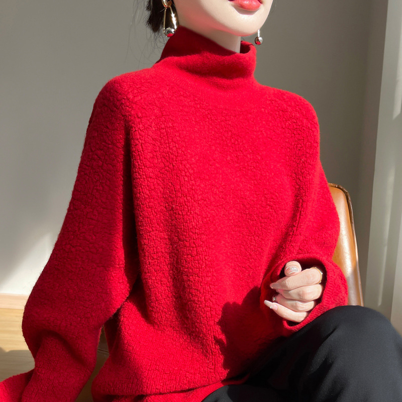 秋冬新作 100 ウールレイジースタイル厚みのあるパイル襟真っ赤な長袖タオル刺繍カシミアボトリングシャツ