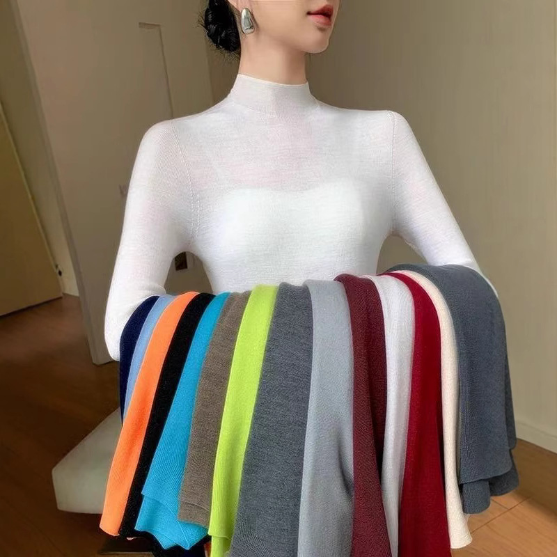 60本の揚子の糸の精紡高襟のウールの底のシャツの女性の春秋のシームレスな薄い金の修身の中で底を打ってやせています。