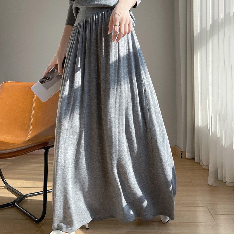 2025年の春の新型の精紡ウールのニットの半身のスカートの純色はゆったりしています。