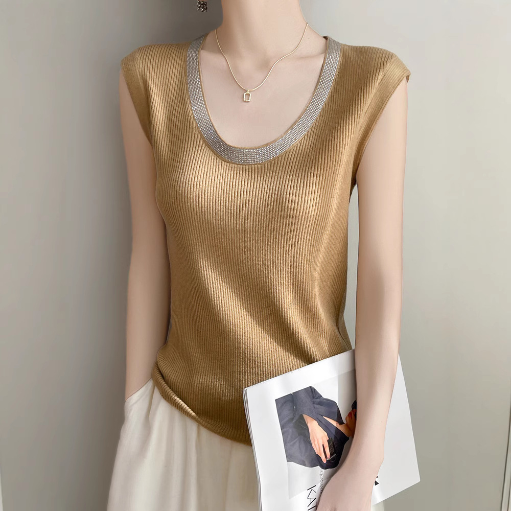 ホットドリルU襟ウールニットベスト女性春夏新作デザイン感ノースリーブニットカーディガン上着代発
