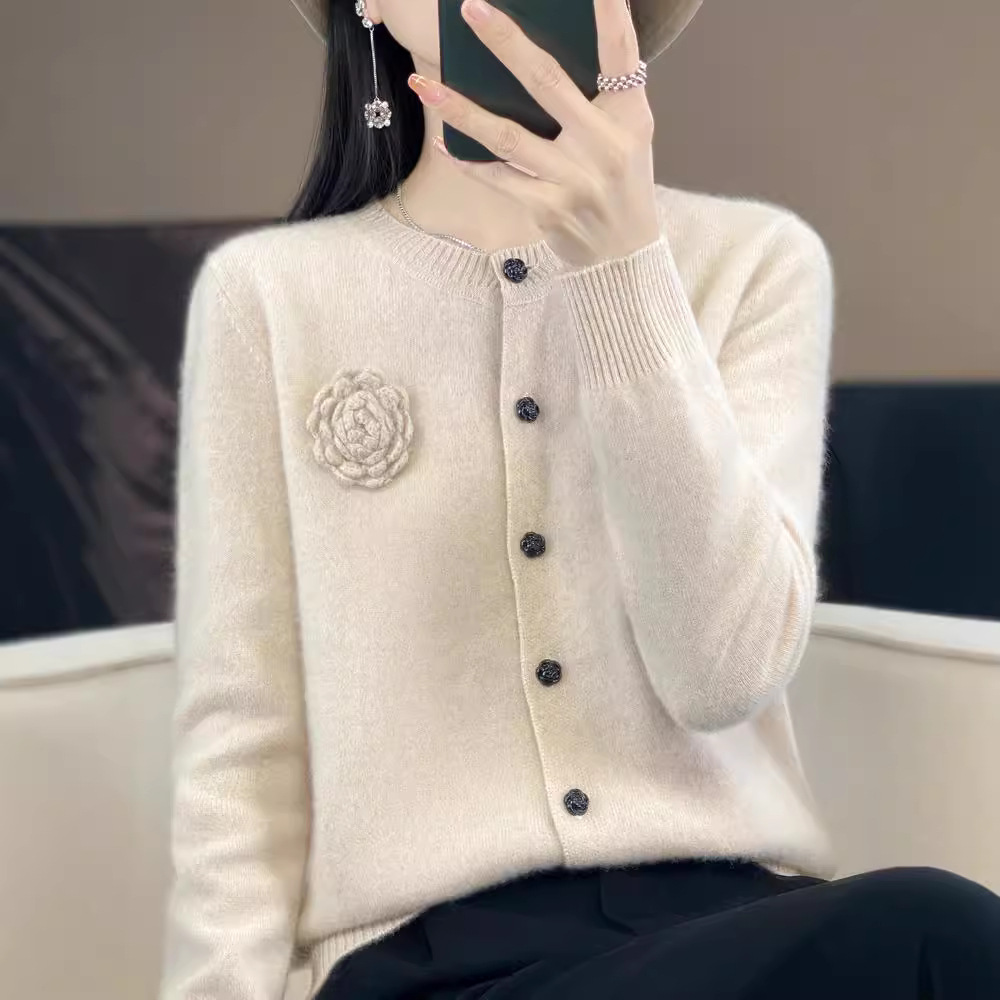 バラの花2024秋冬ウールのカーディガン女性の洋風の外に上着を着ます。