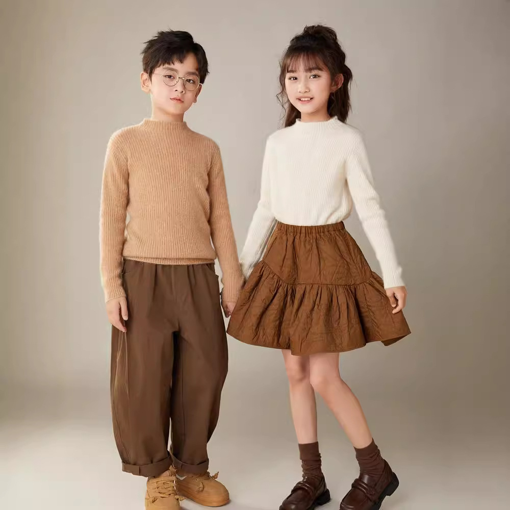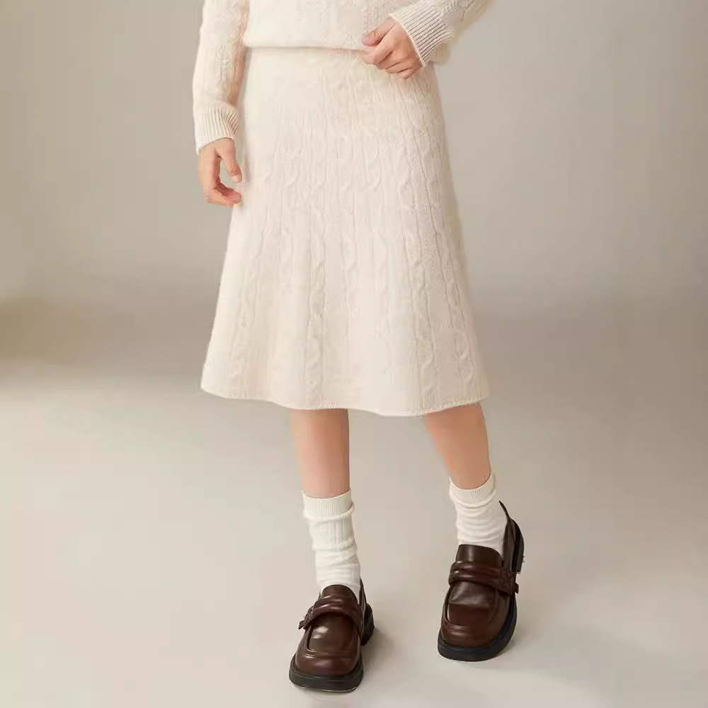 秋冬の新型の厚い子供のウールのスカートの麻の花の純色の半身のスカートの女の子は赤ちゃんのカシミヤのa字のスカートを編みます。