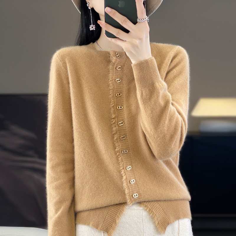 丸首フリンジ2024ウールカーディガンの女性は長袖のコートのセーターを多く掛けます。